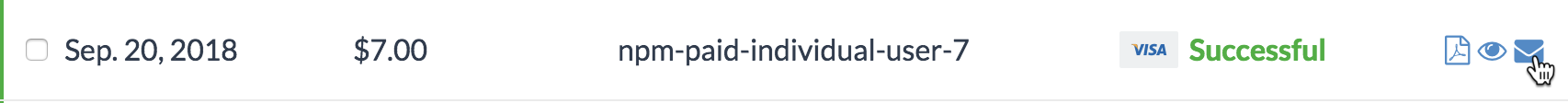 To email a single receipt, find the row of the receipt you want to download, then, on the right side of the row, click the email icon.